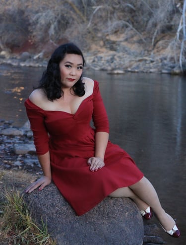 As a first generation Asian American woman, I am expected to follow the ambitious, slender, and meek stereotype provided by my family and culture. Growing up, I've always been loud, large, and everything they abhor. When I discovered the body positivity of pinup, I fell in love with the culture and my own curves. The pinup community has been incredibly supportive, offering a space where I can freely express myself without judgment on my own terms. This empowering experience has not only boosted my self-esteem but also allowed me to connect with like-minded individuals who appreciate and celebrate the beauty of curvacious femininity.